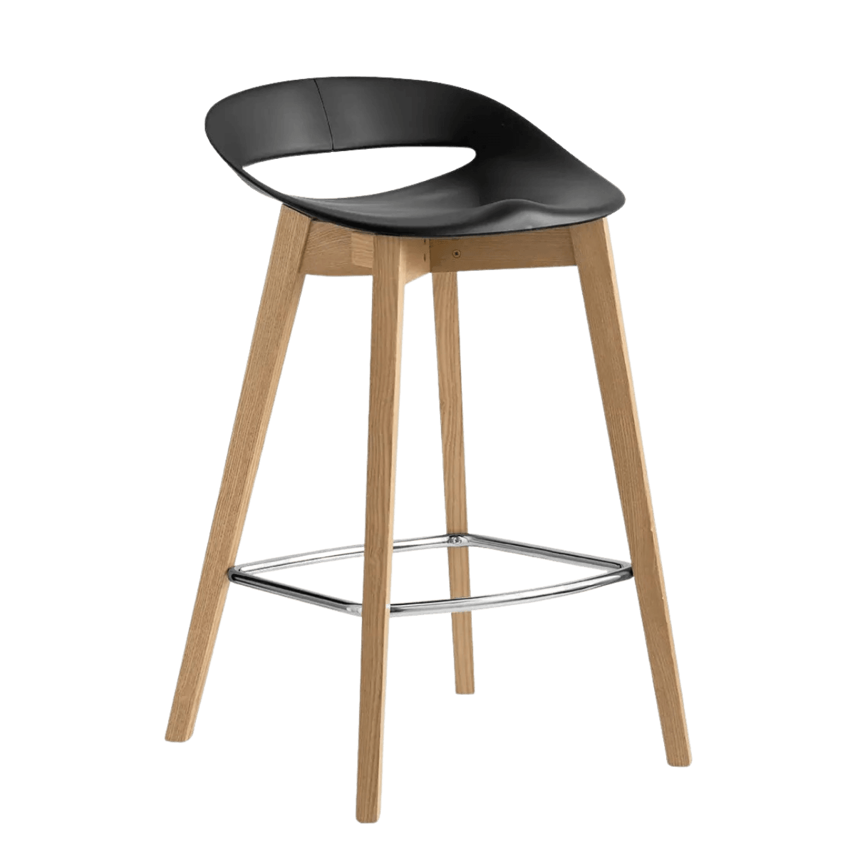 Sjedište i naslon izrađeni su od polipropilena te su dostupni u više boja iz palete proizvođača, dok metalni oslonac za noge dodatno povećava udobnost pri sjedenju. Model je dostupan u više kombinacija, a dodatne varijante moguće su na upit, čime se postiže visoka razina prilagodbe potrebama korisnika.