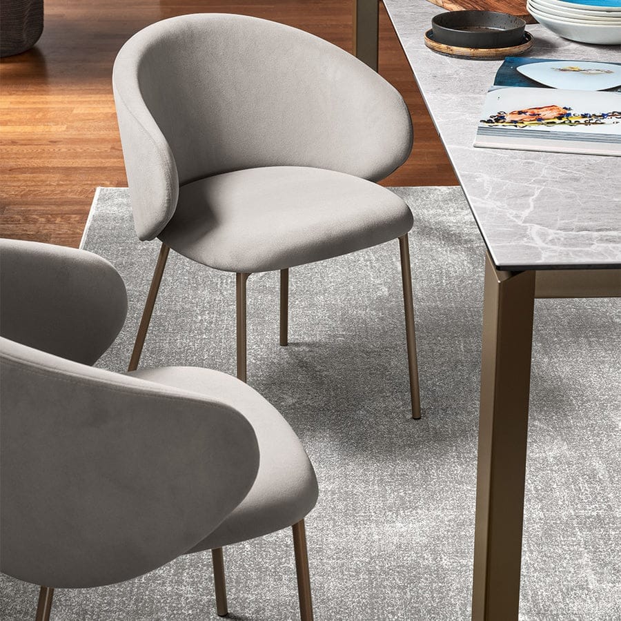 Sjedište i naslon tapecirani su u tkaninu ili eko kožu, uz izbor iz bogate ton karte, čime se osigurava visoka razina udobnosti i estetske prilagodljivosti. Kao dodatna opcija, stolica može biti izvedena s drvenim nogicama, bez rukonaslona ili s okretanim mehanizmom, što ovaj model čini iznimno fleksibilnim za različite namjene i stilove uređenja.