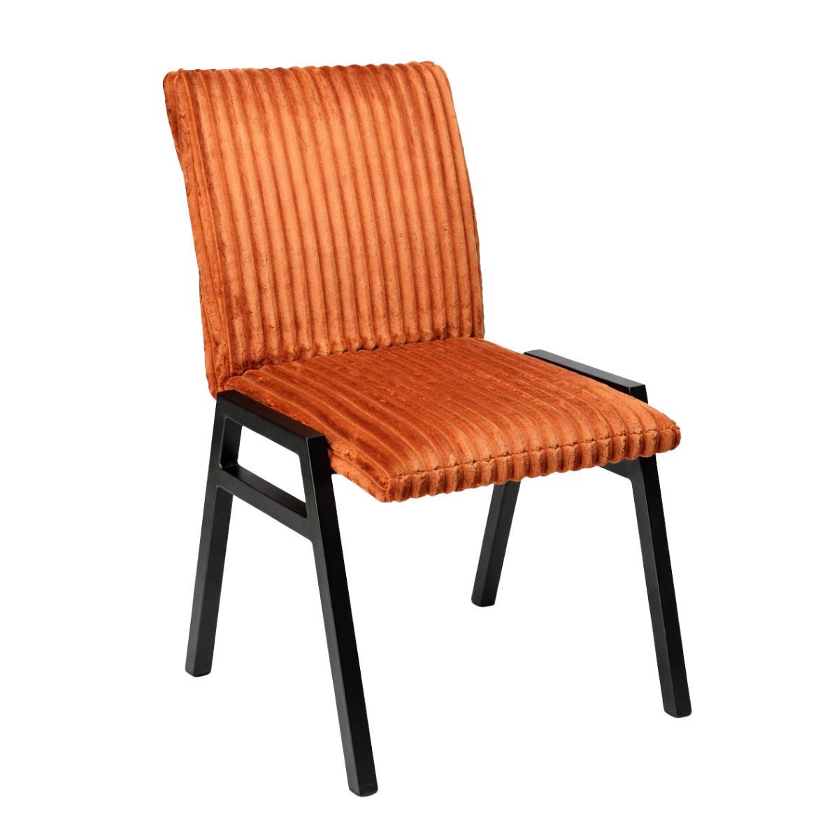Crna drvena baza naglašava suvremeni dizajn i čini ovu stolicu pogodnom za blagovaonice, restorane, kafiće ili moderne uredske prostore. Kombinacija toplog tona presvlake i tamne konstrukcije omogućuje jednostavno uklapanje u različite stilove interijera. Stolica je složiva jedna u drugu.