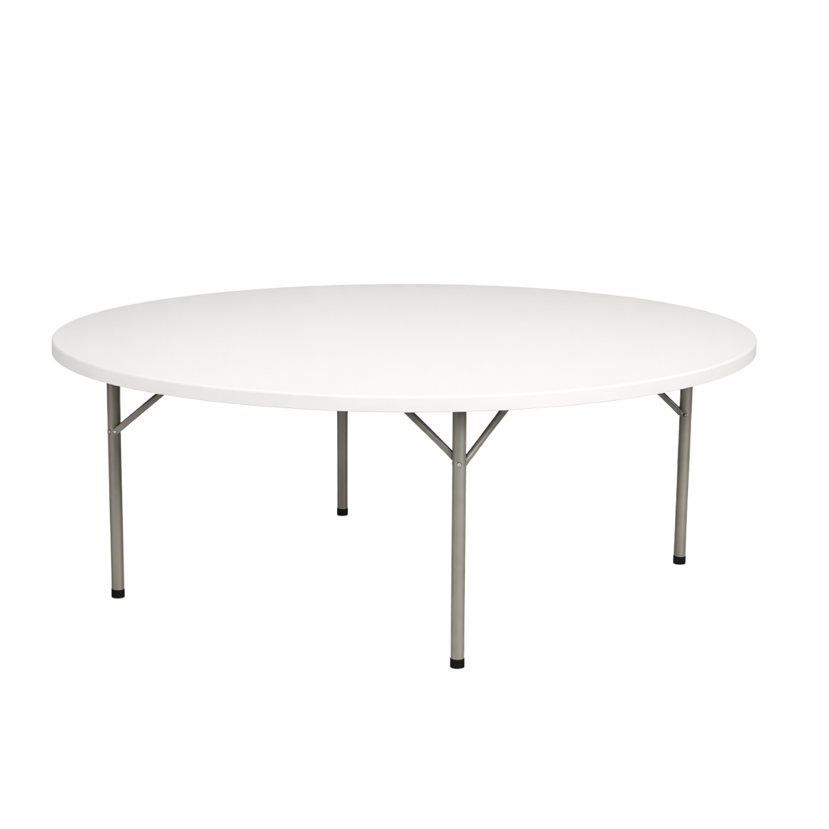 Okrugli sklopivi stol promjera 180 cm s metalnom konstrukcijom, stabilan i praktičan za bankete, svadbe i profesionalnu upotrebu.