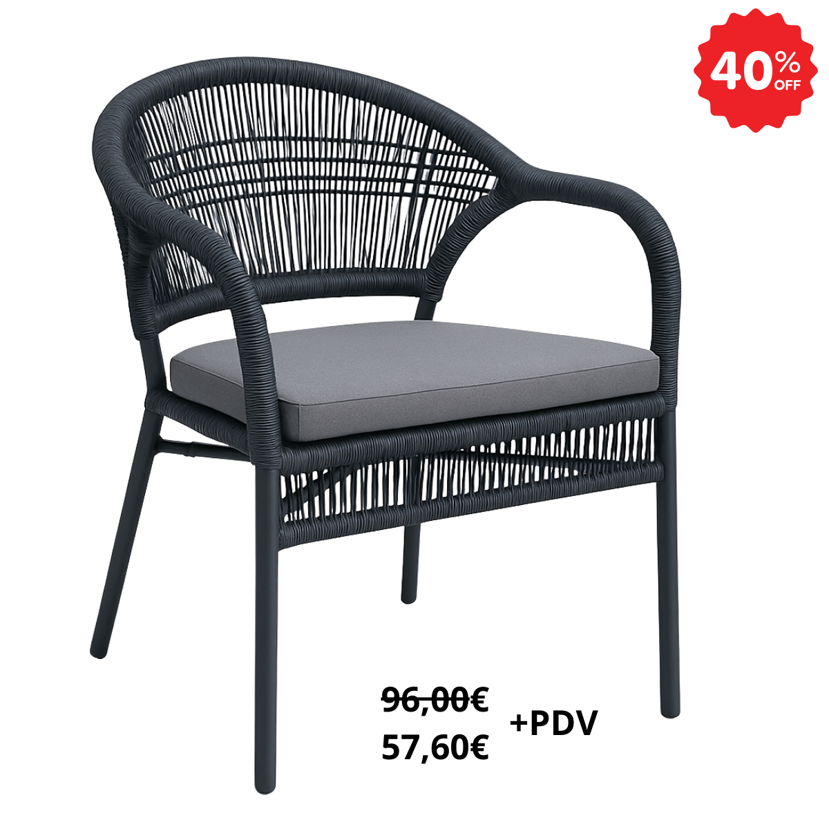 Stolica je opremljena jastukom od vodoodbojne tkanine crne boje, što je čini pogodnom za vanjsku upotrebu. Dostupna je u više kombinacija boja, omogućujući lako uklapanje u različite ambijente. Zahvaljujući mogućnosti slaganja jedna na drugu, idealna je za prostore gdje je potrebno jednostavno skladištenje.
