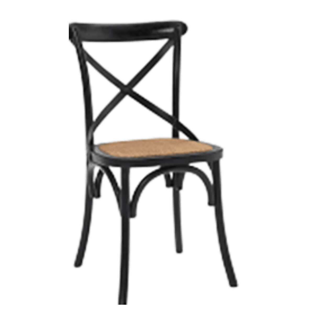 Drvena stolica s ratan sjedištem i crnom konstrukcijom, idealna za restorane, kafiće i prirodno uređene interijere.