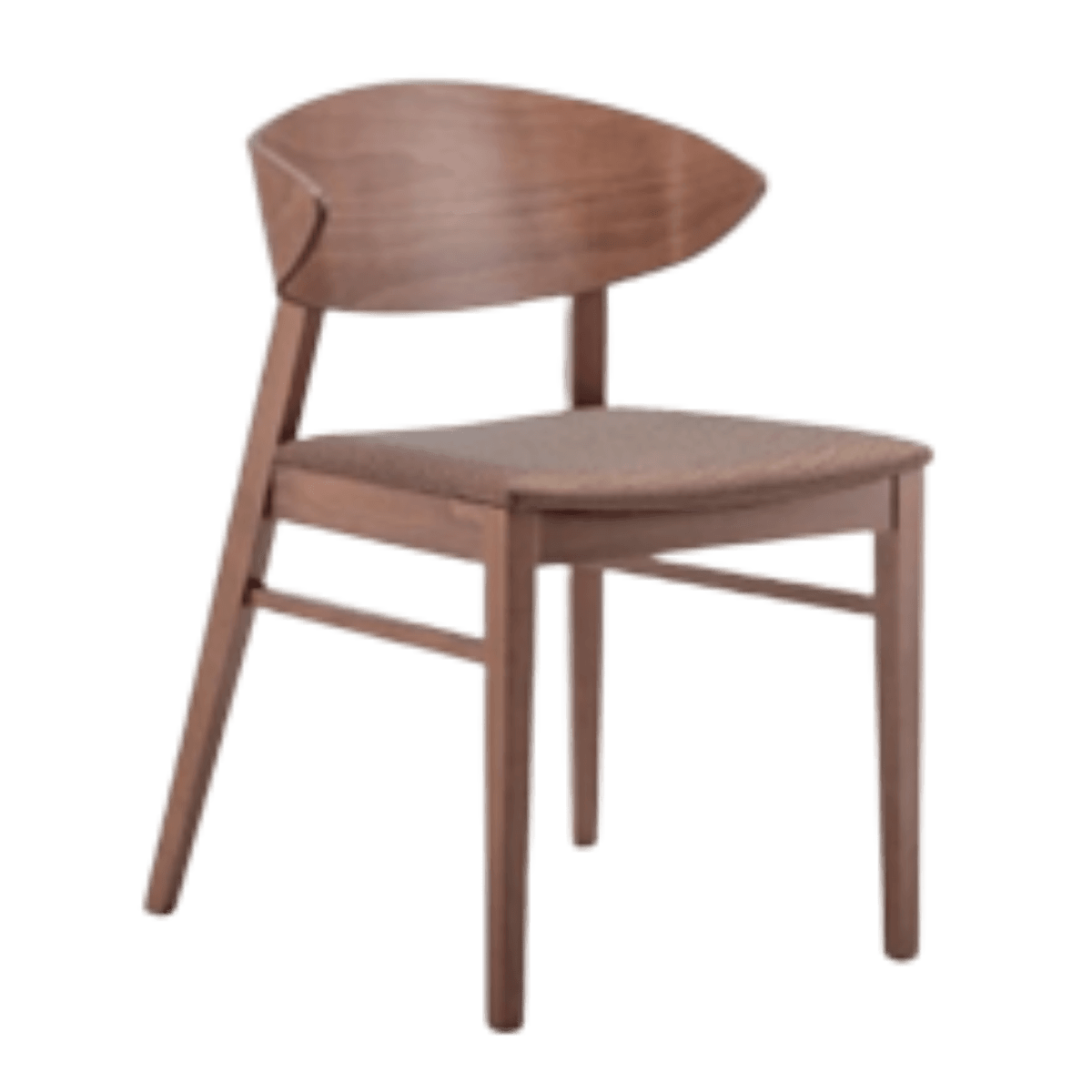 Naslon je izrađen od špera u boji konstrukcije, dok je sjedište tapecirano tkaninom ili eko kožom, s velikim izborom materijala i boja. Dobro izbalansirane dimenzije osiguravaju udobno sjedenje i funkcionalnost u svakodnevnoj upotrebi.