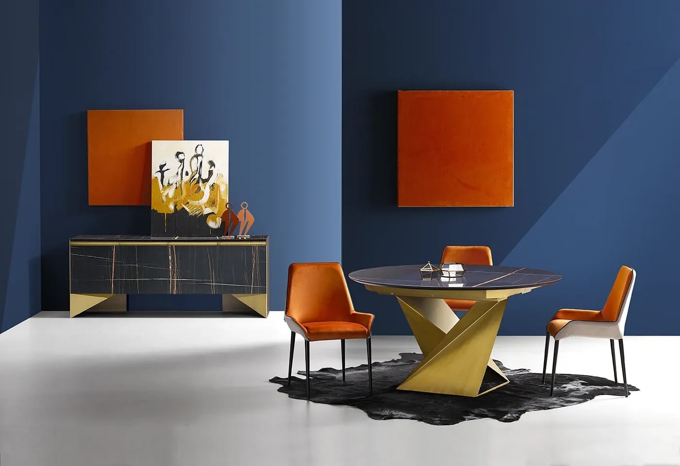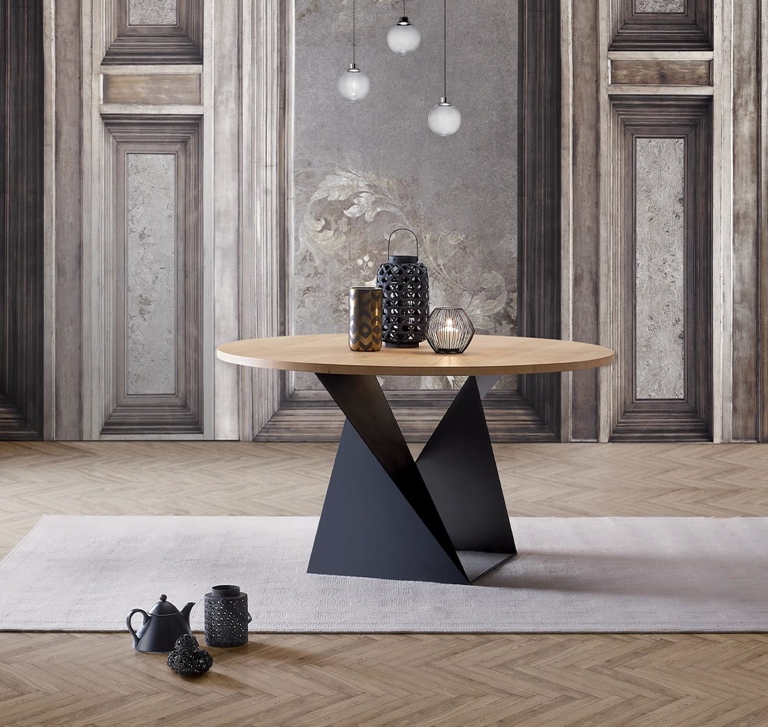 Konstrukcija stola izrađena je od metala, s mogućnošću odabira boje prema paleti proizvođača. Ploča stola je okruglog oblika, a materijal i boja ploče biraju se prema ton karti proizvođača. Stol je produljiv i opremljen pouzdanim sustavom za razvlačenje, što omogućuje prilagodbu različitim potrebama prostora. Dostupna je i izrada stola u drugim oblicima, na upit.