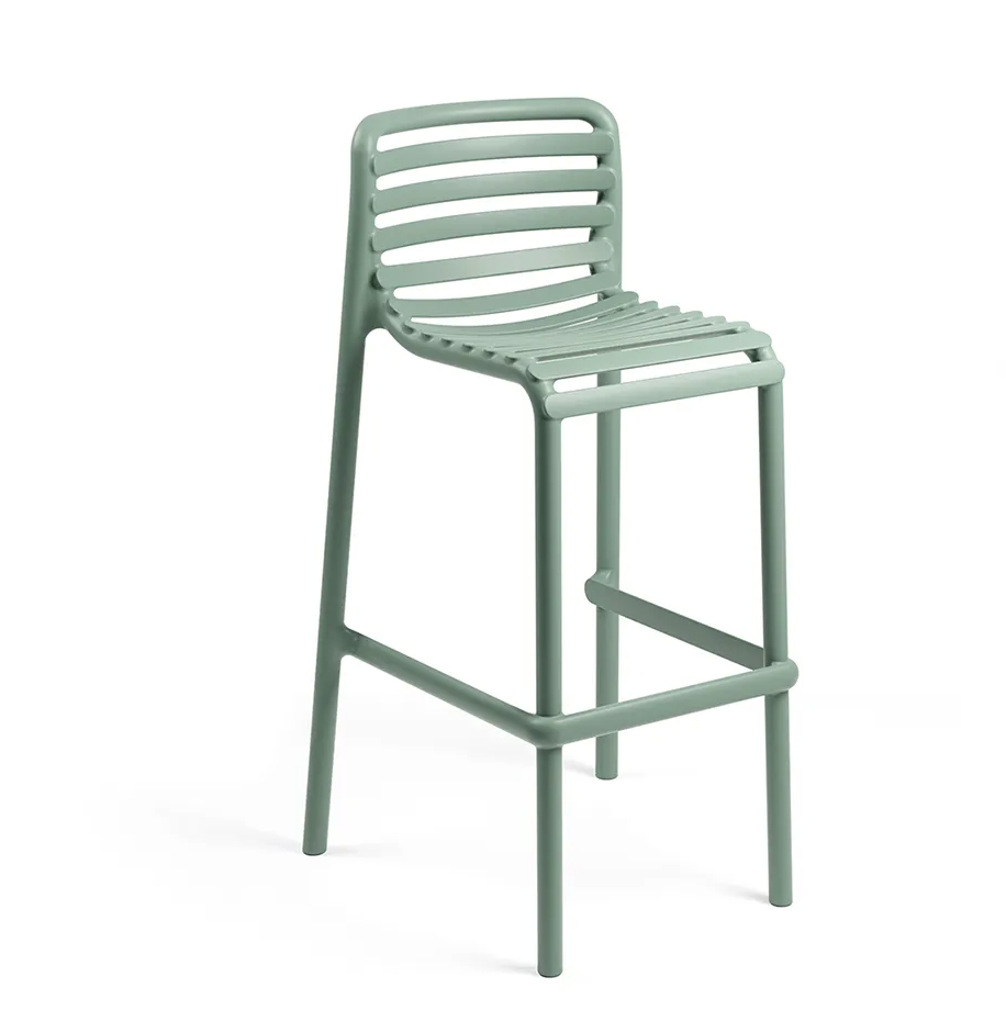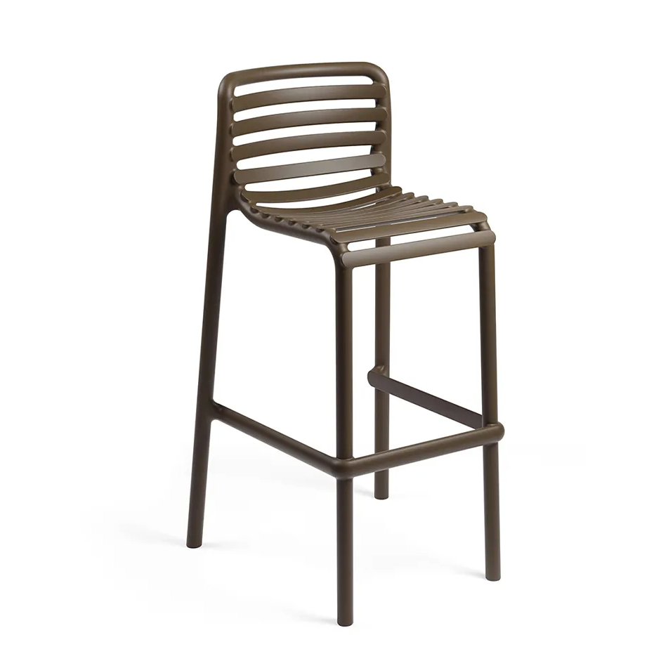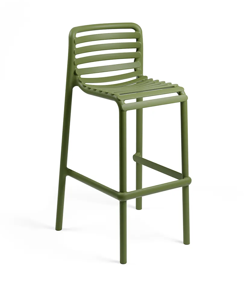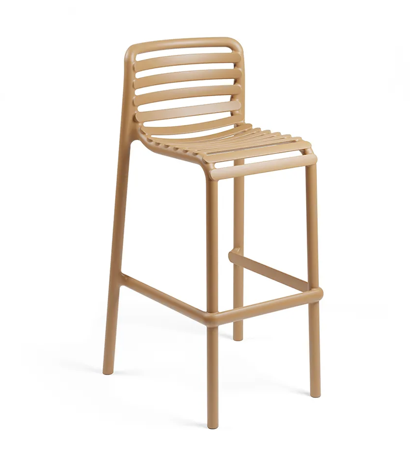 NR Doga Bar je lagana barska stolica za vanjske prostore, prepoznatljiva po letvičastom dizajnu i elegantnoj, zaobljenoj silueti. Sjedalo u obliku blage S krivulje pruža dodatnu udobnost i naglašava dinamičnu liniju proizvoda.