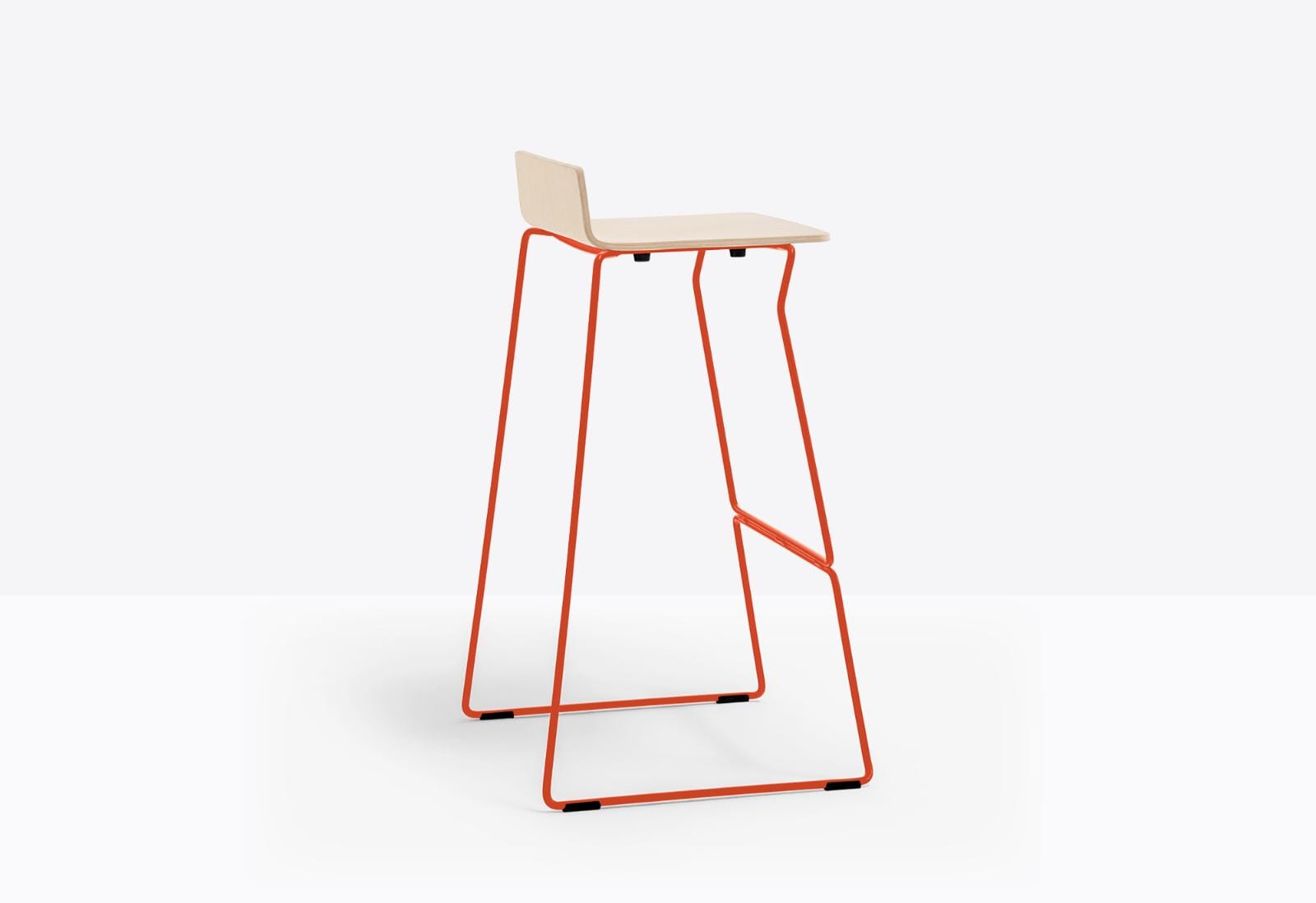 Stolica s metalnom konstrukcijom i drvenim sjedištem, idealna za ugostiteljske prostore i moderne interijere, uz mogućnost polubarske izvedbe.