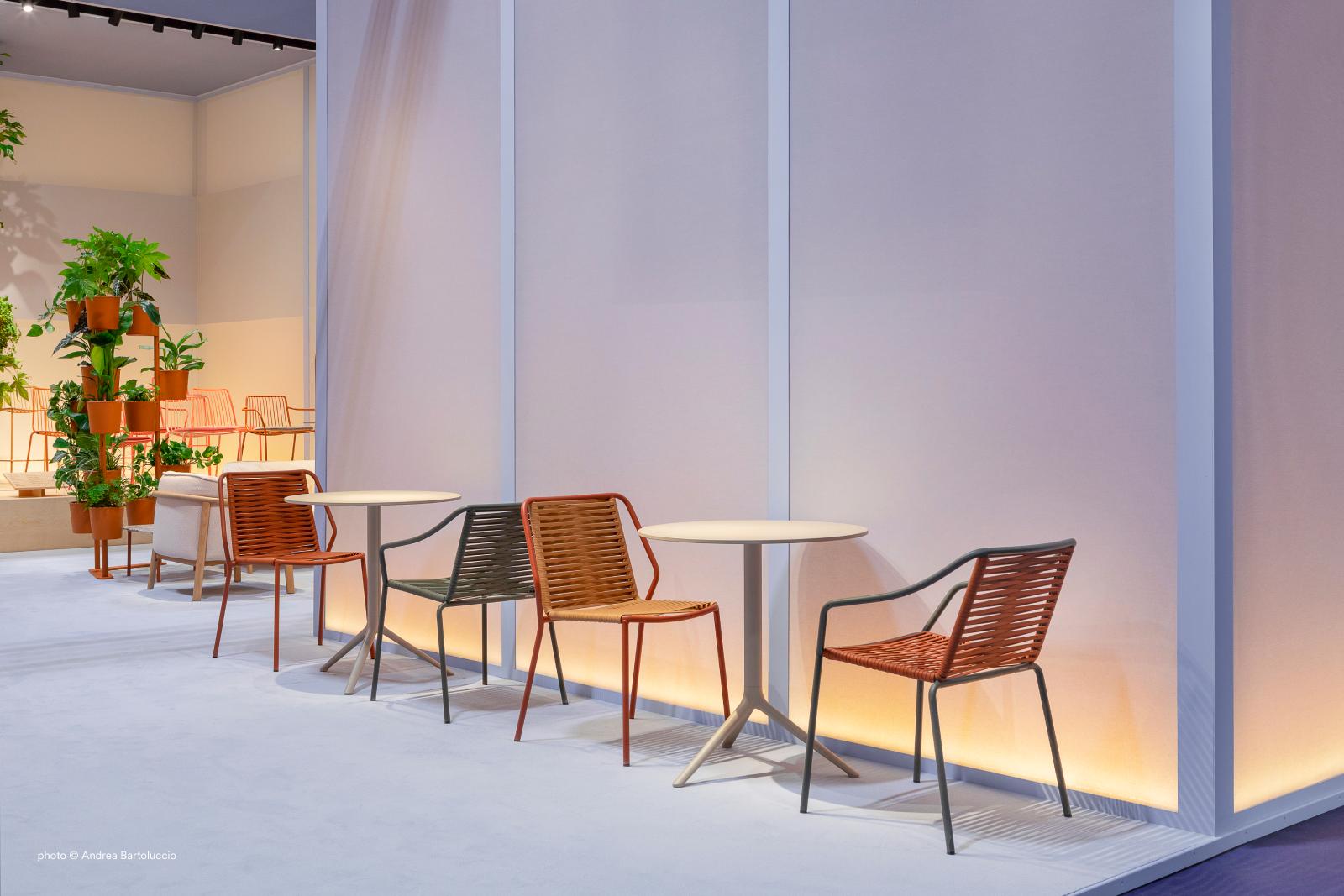 PE Philía 3905 dio je kolekcije vanjskog namještaja inspirirane tradicionalnim talijanskim vrtnim stolicama i opuštenim načinom života na otvorenom, karakterističnim za talijansku “dolce vita” šezdesetih godina. Dizajn spaja racionalne, geometrijske linije s mekšim oblicima prilagođenima ljudskom tijelu, stvarajući sklad između estetike i udobnosti.