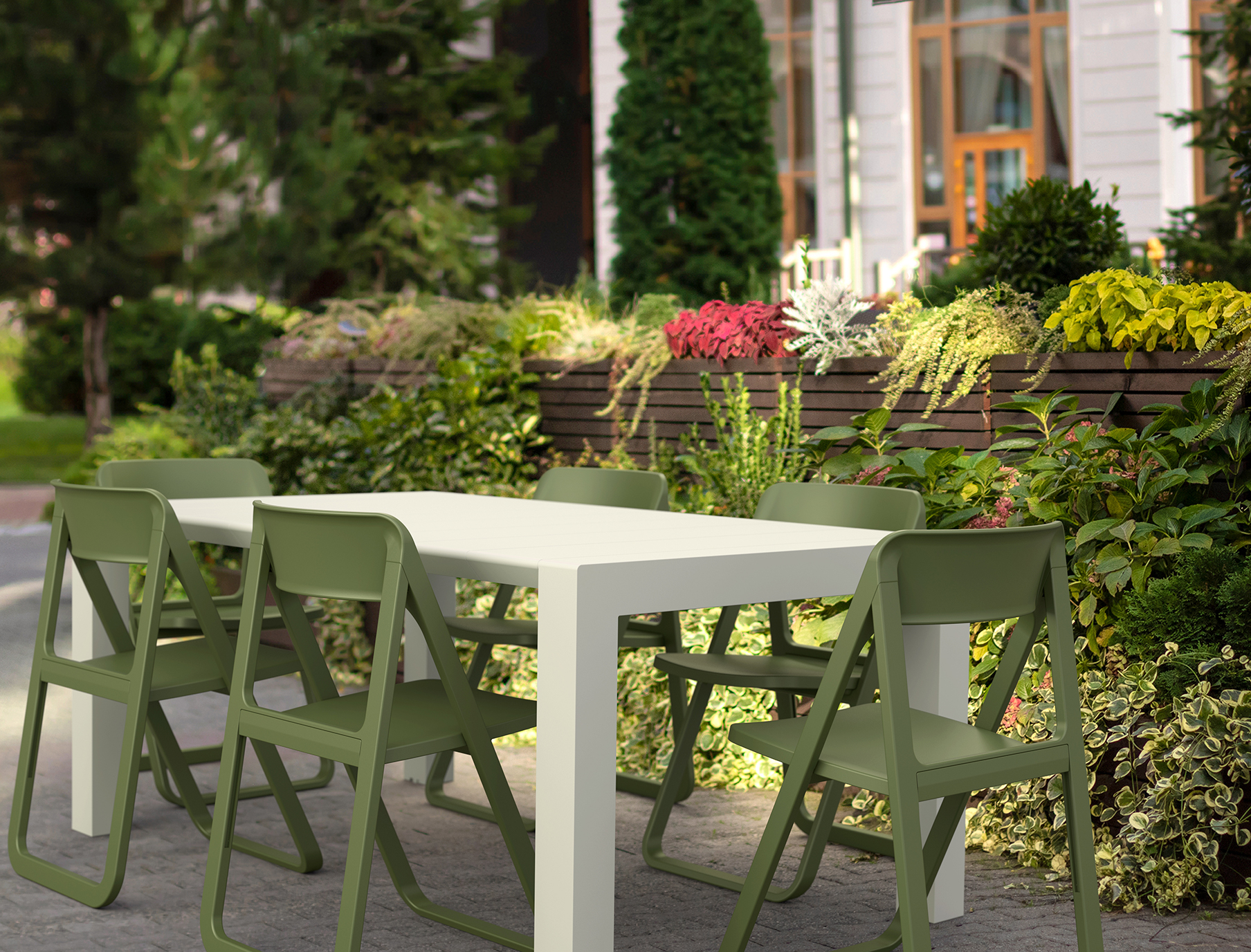 Sklopivi mehanizam omogućuje brzo spremanje i jednostavno skladištenje, što je čini praktičnim rješenjem za prostore koji zahtijevaju fleksibilnost. Neutralni tonovi osiguravaju lako uklapanje u različite ambijente. Stolica je pogodna za unutarnju i vanjsku uporabu te otporna na vremenske uvjete i svakodnevno korištenje.