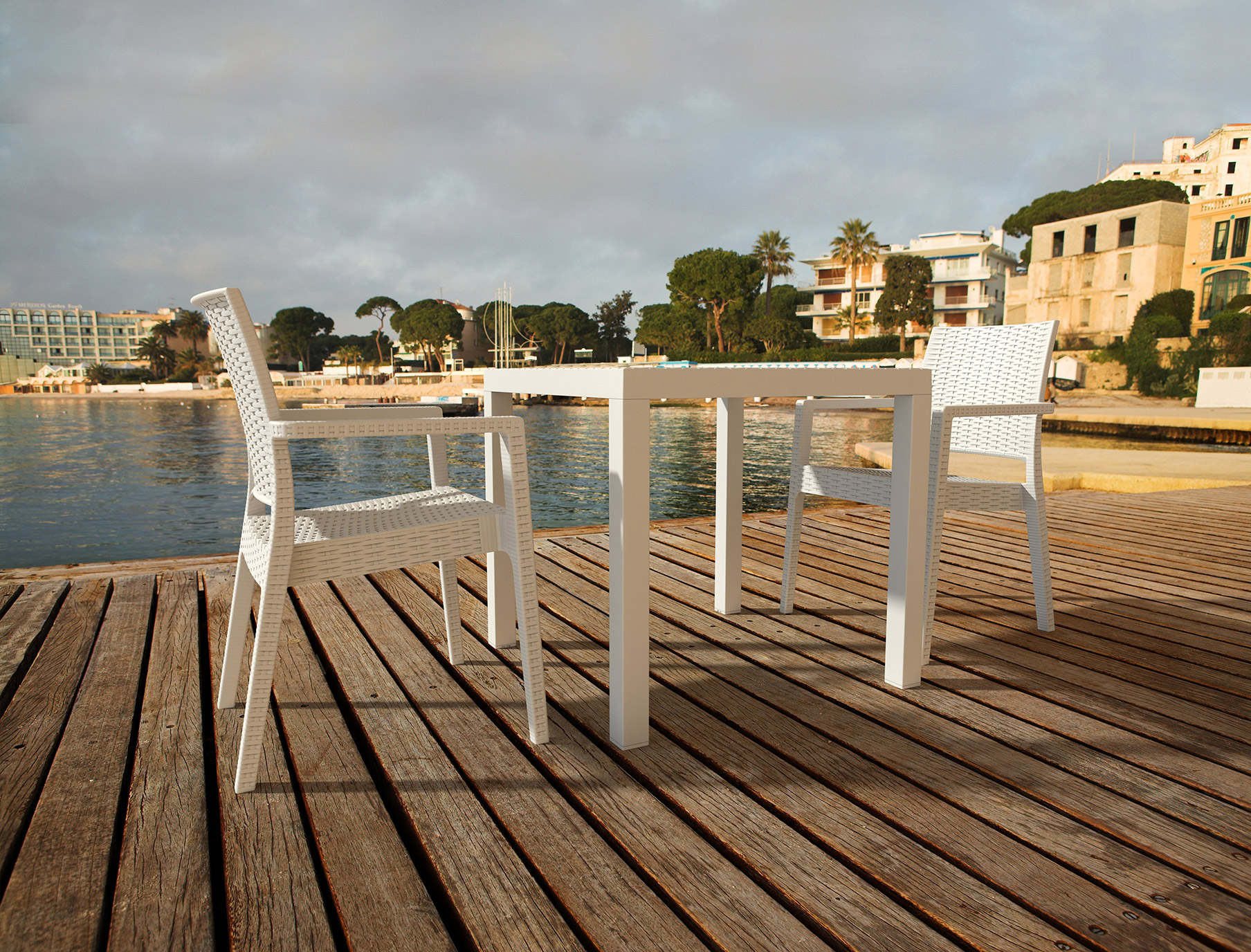 ST Ibiza je slagiva stolica s rukonaslonima izrađena od izdržljive smole otporne na vremenske uvjete, ojačane staklenim vlaknima. Konstrukcija bez metalnih dijelova osigurava dugotrajnost bez rizika od hrđanja, propadanja ili oštećenja uzrokovanih vlagom i vanjskim utjecajima.