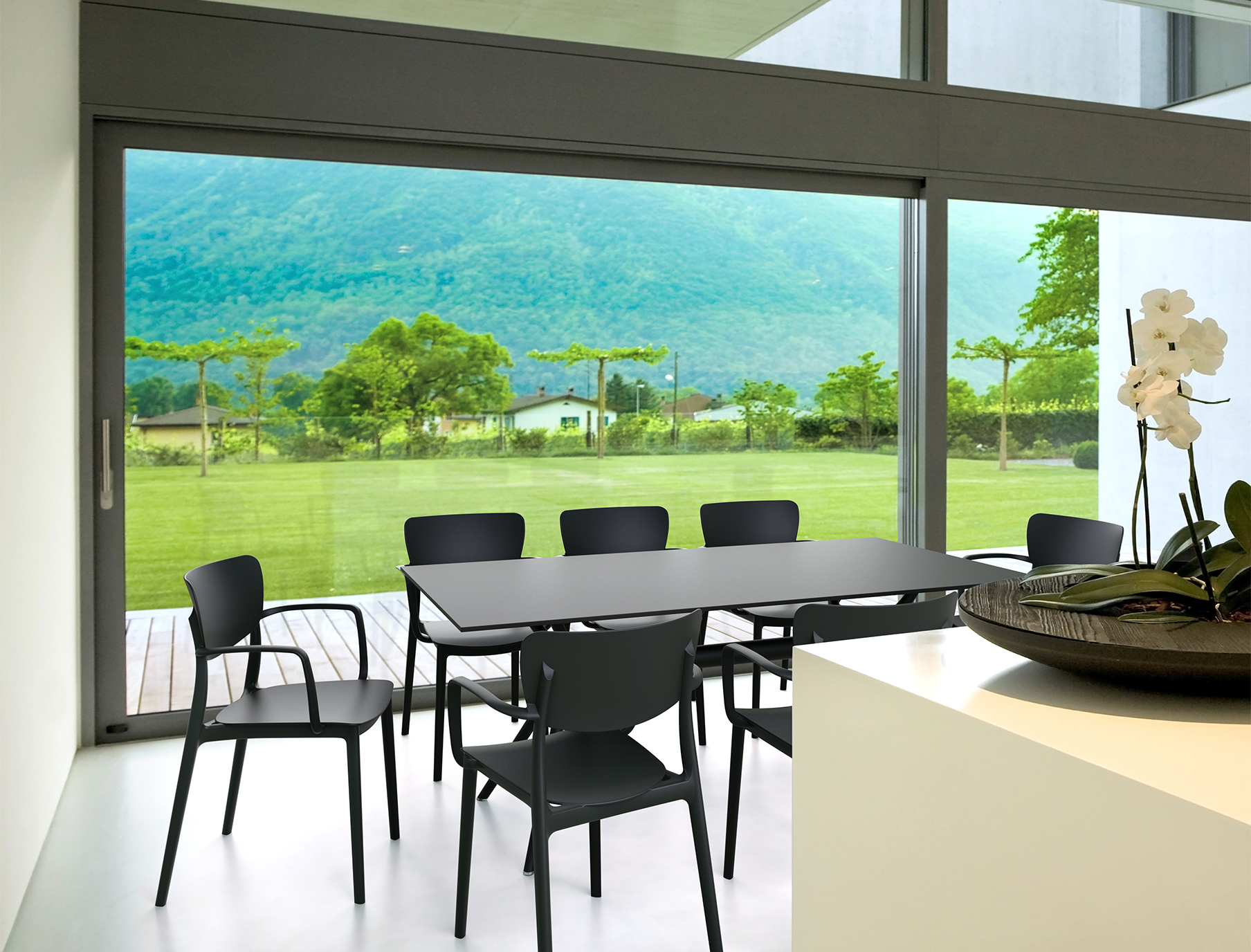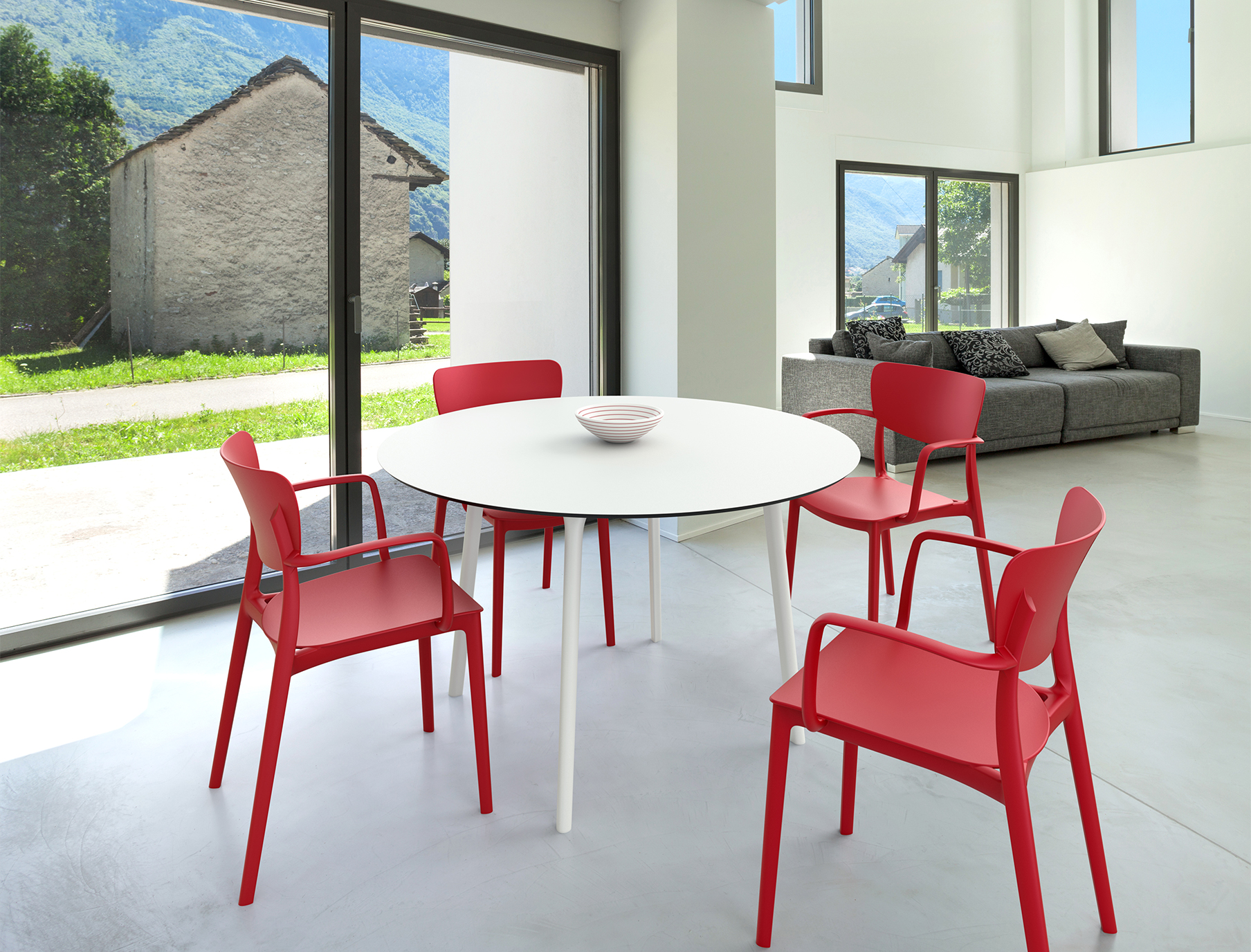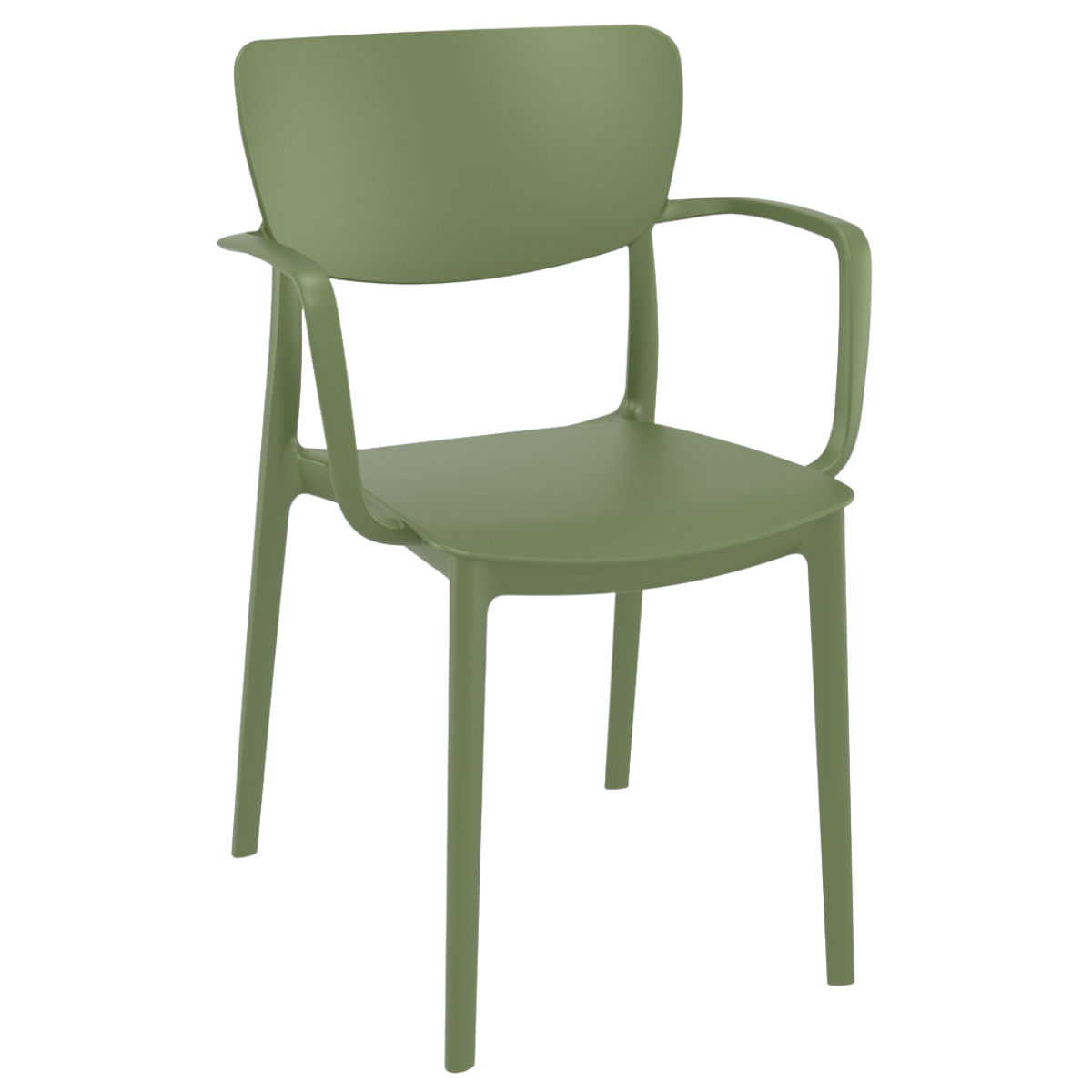 Stolica s rukonaslonima izrađena u jednom komadu od polipropilena ojačanog staklenim vlaknima. Izdržljiva, lagana i pogodna za unutarnje i vanjske prostore.