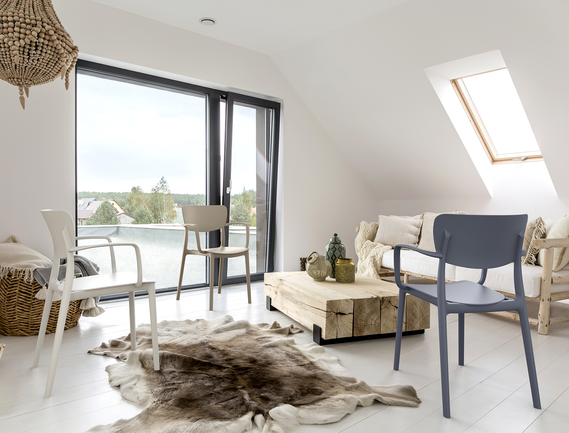 Neutralni tonovi omogućuju jednostavno uklapanje u različite stilove uređenja, dok konstrukcija otporna na vanjske uvjete čini model pogodnim za terase, vrtove, ugostiteljske objekte i unutarnje prostore. Stolica je prilagođena svakodnevnoj upotrebi te jednostavna za održavanje.