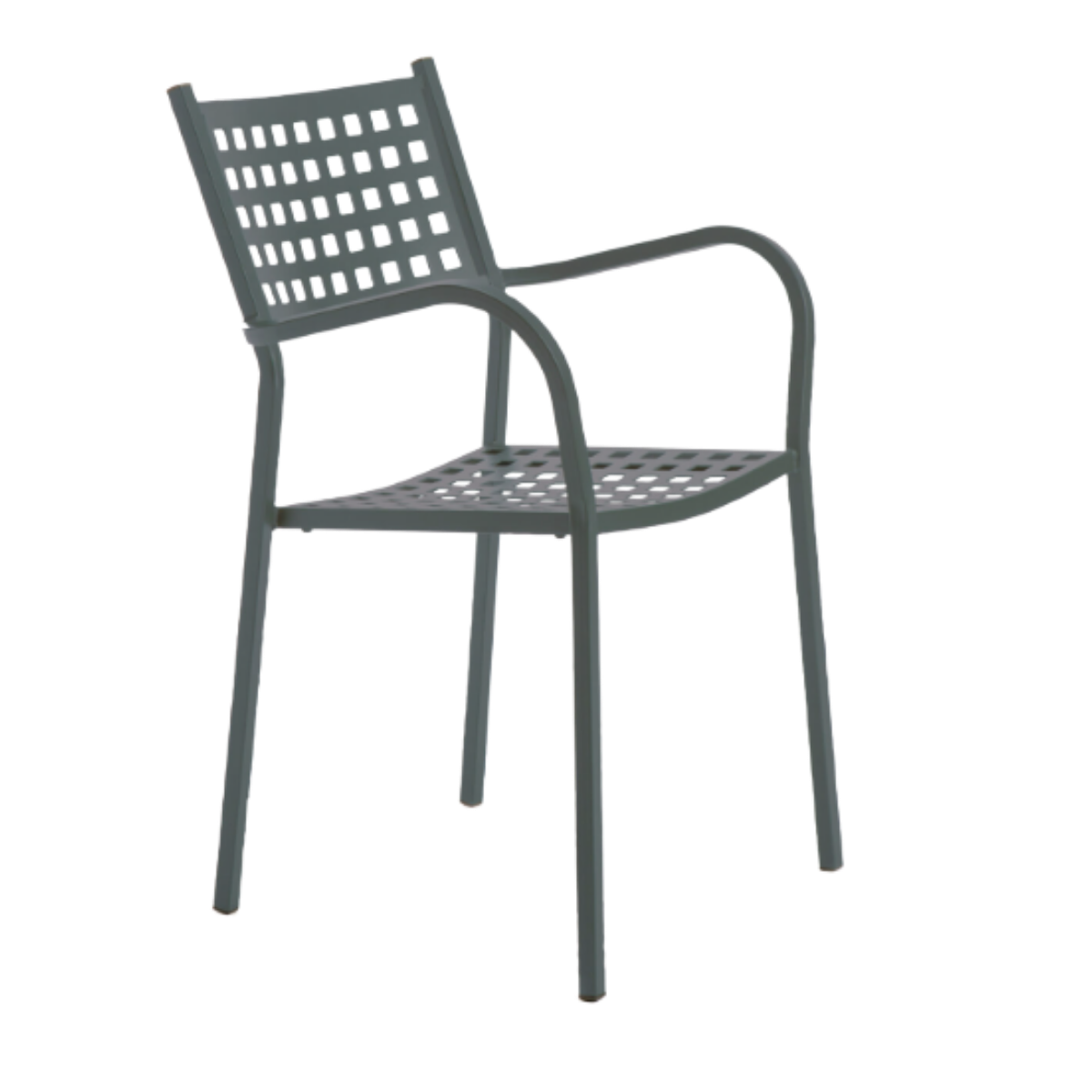Moderna i izdržljiva željezna stolica idealan je izbor za terase, balkone, vrtove i ugostiteljske objekte. Izrađena od kvalitetnog metala s praškastim premazom, otporna je na vremenske uvjete, vlagu i UV zračenje, što osigurava dugotrajnost i postojanost boje.Ergonomski oblikovan naslon i perforirano sjedište omogućuju udobno sjedenje te bolju cirkulaciju zraka tijekom toplih dana. Stabilna konstrukcija pruža sigurnost i čvrstoću, dok minimalistički dizajn s čistim linijama omogućuje lako uklapanje u različite stilove uređenja – od modernih do industrijskih prostora.Stolica je praktična za održavanje, jednostavna za čišćenje i pogodna za svakodnevnu upotrebu na otvorenom.